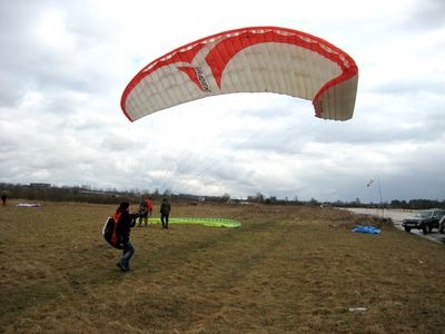 Сегодня продолжил тренировки с крылом. Погода была в основном пасмурная, не летали, только тренировались на земле.