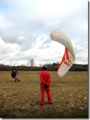 Сегодня продолжил тренировки с крылом. Погода была в основном пасмурная, не летали, только тренировались на земле.